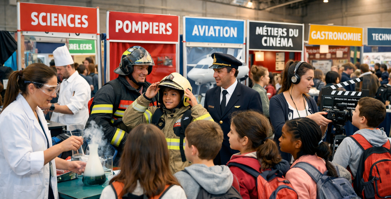 Un événement dédié à la découverte de nombreux métiers, permettant aux enfants d’explorer différents univers professionnels, d’écouter des témoignages et de s’inspirer de parcours variés.